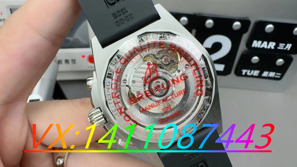 此外,真表的機芯往往還具備一些特殊的功能,比如計時、潛水等等,這些功能不僅增加了腕表的實用性,也提升了其觀賞價值。BLS 廠百年靈在功能方面的還原往往只能做到形似,難以達到神似,是不具備潛水功能的,而只是一個功能擺設,而復雜計時功能在復刻表中可能會出現運行不穩定、誤差較大等問題,這也是 BLS 廠百年靈與正品的一個重要區別。