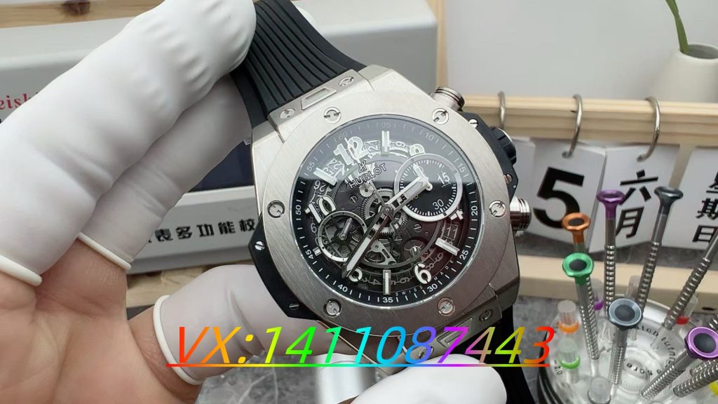 機芯作為腕表的核心,BBF 廠為這款黑盤大爆炸采用了基于 ETA 7750 機芯改良而成的 HUB1280 機芯。這款機芯不僅穩(wěn)定性強,還高度還原了原裝機芯的外觀與功能表現(xiàn)。擺輪位置與原版 HUB1280 一致,夾板紋路經(jīng)過精心打磨,呈現(xiàn)出日內(nèi)瓦條紋效果。厚度方面,復(fù)刻機芯為 7.8mm,與正品的細(xì)微差異幾乎可以忽略不計。這款基于 7750 機芯的改裝作品,首次實現(xiàn)了背透設(shè)計的 90% 相似度,堪稱復(fù)刻表行業(yè)的技術(shù)革命。在實際使用中,機芯運行穩(wěn)定,儲能可達(dá) 48 小時左右,無論是日常佩戴還是運動場合,都能保持精準(zhǔn)的時間顯示和穩(wěn)定的計時功能。?